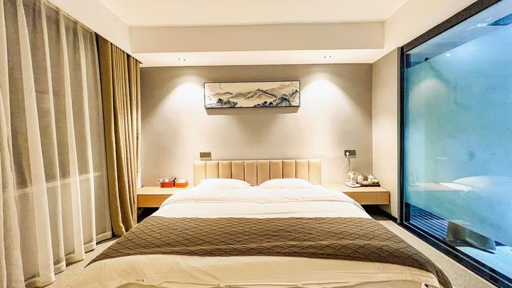 房间很宽大,整屋的硬件和软件配置还是很到位的,温馨的灯光洒下,在冲个热水澡,一天爬山的疲累感瞬间会被洗去,然后钻进被窝做个好梦吧。