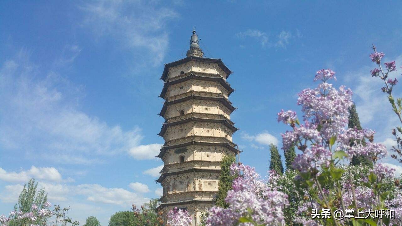 万部华严经塔,因其白色,又称“白塔”,位于呼市东郊的白塔村西南方,该塔高55.5米,塔内墙壁上写满了各族人民用汉、蒙古、藏、维吾尔、契丹、女真、八思巴文等文字书写的题记,值得一看。