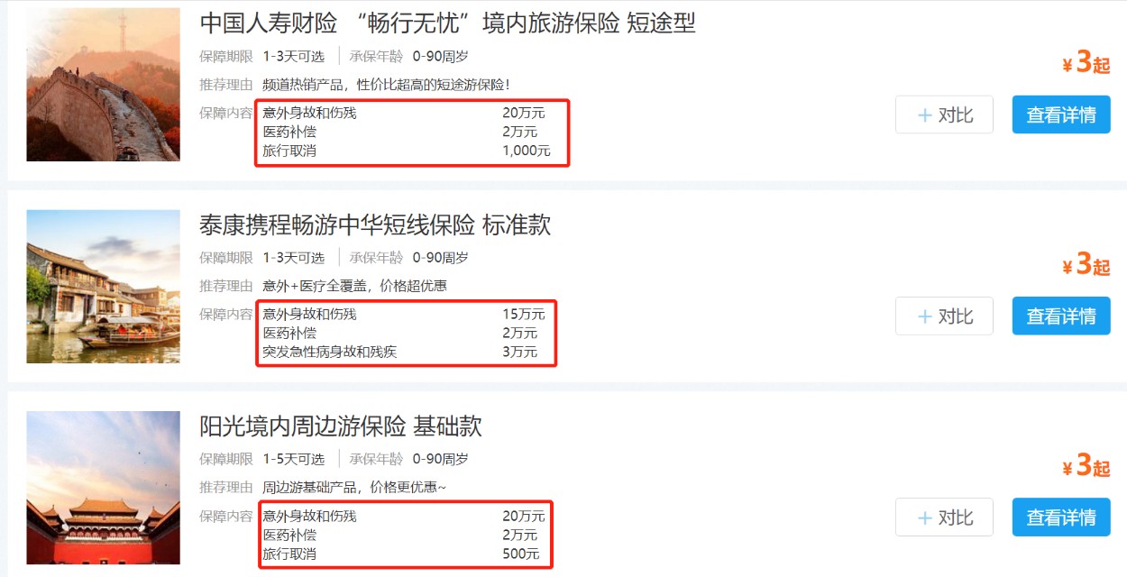 如果投保人身体健康没有太大问题的,那就可以选择最便宜的保险,比如携程3块的保险产品有3种
