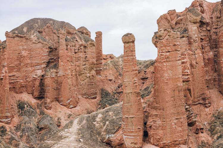 冰沟丹霞虽距离七彩丹霞不远,但隶属两个不同的县。七彩丹霞属于临泽县,而冰沟丹霞位于肃南裕固族自治县。来到冰沟自驾游玩,眼前是一座座峰林,山峰层次错落、岩壁陡峭、气势磅礴、形态丰富。悬崖峭壁,像刀削斧辟,直指蓝天。窗棂状宫殿式山体是丹霞地貌的一大特点,在这里得到了最好的体现。