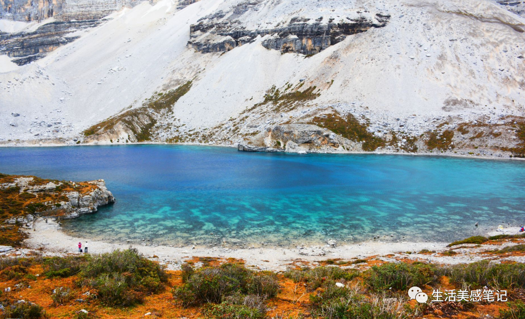 中午达到珍珠海:这是一个坐落于雪山脚下的淡水湖,湖水碧绿、透明度极高。湖边的草甸是拍照的好地方。门票150元。