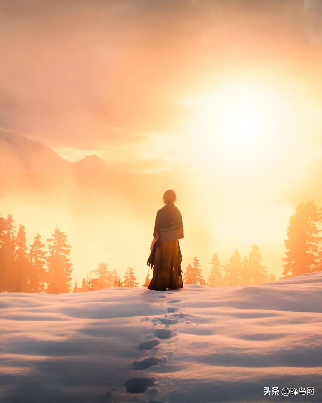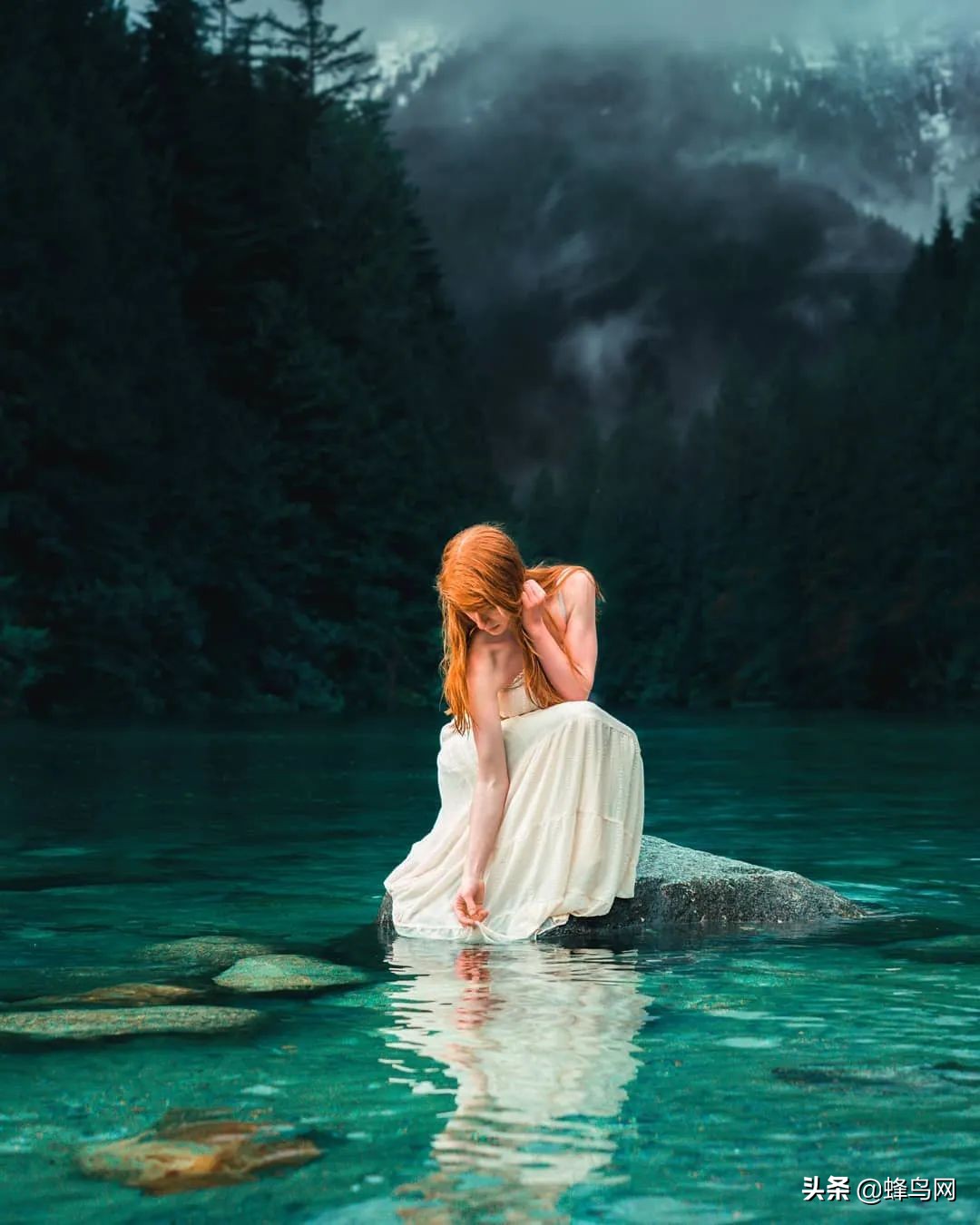 她于山川湖泊森林田野之间铺展画布,穿着单薄飘逸的纱裙在雪地里奔跑,清晨站在冰冷的湖水中如同水之精灵。
