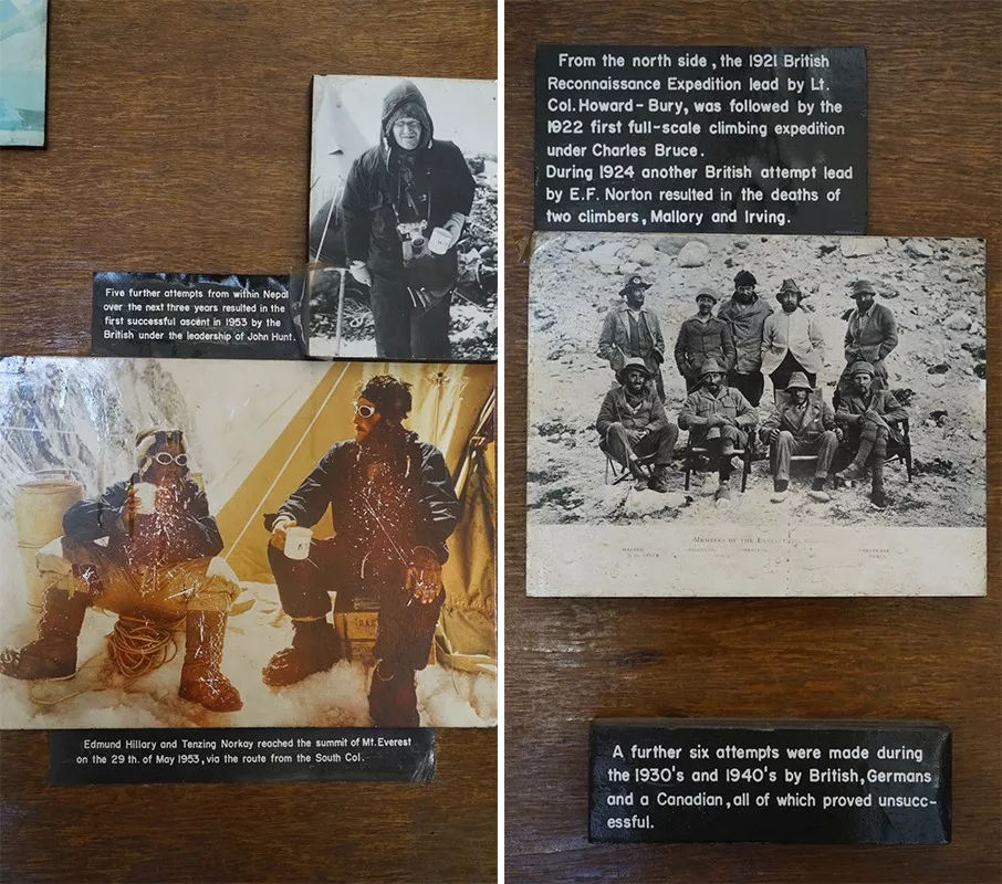 另一个博物馆收费250尼币,这是最早攀登珠峰的营地,里面有三个房间,一个保留着最初的夏尔巴住所,一个房间介绍夏尔巴生活的物品及照片陈列,一个房间介绍关于珠峰攀登的一切。