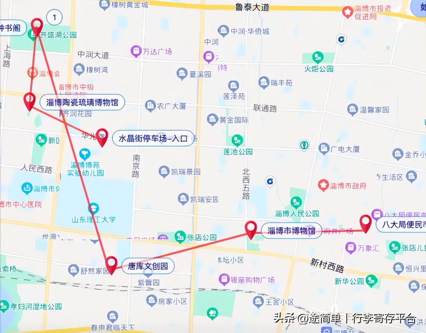 路线:八大局菜市场(早餐&小吃)➠淄博博物馆➠唐库文创园➠海岱楼钟书阁(在齐盛湖公园里)➠中国陶瓷琉璃博物馆➠水晶街(烧烤)