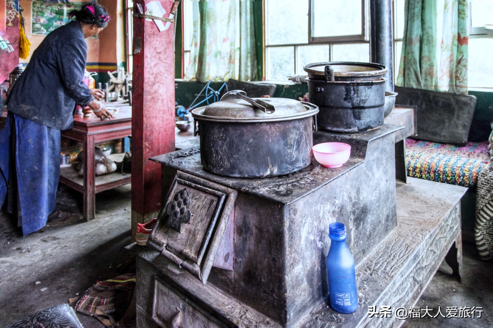 我虽然听不懂慈祥的藏民老阿妈说什么,但对方的盛情不需要任何语言。于是,大家围坐在一起,边拍照边聊天。女主人端来热腾腾的开花馒头和香浓的酥油茶,一路的疲倦顿时全无。刚开始,我还有点不习惯喝酥油茶,出于礼貌,我还是挣扎着喝了一整碗,藏民说酥油茶能缓解高原反应。