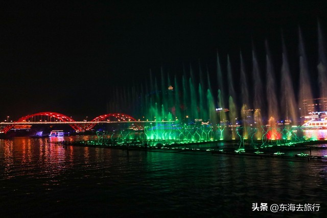 四、柳州的音乐喷泉晚上8点喝和9点会开启,每次开启的时间是十分钟。音乐喷泉可以说是柳州夜景最精华的一部分,结合它身后的夜游柳江船只以及后面的瀑布,还有远处的灯光配合,在这里你就可以看到最美的柳江夜景。一定要注意音乐喷泉开启的时间,这时候也是游客观赏柳州夜景最美的时间。在美妙的音乐声中看着喷泉展示着各种高低起伏,仿佛把人带到一种如幻如梦的童话世界里。