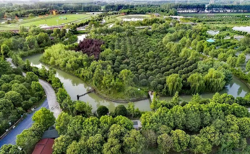 公园生长着十多万棵杉树,高大茂密、生机盎然,拥有森林迷宫、闻莺桥、落鹜亭、卧波桥、曲桥亭、风味茶社、林中水榭等景点,形成林中有水、水中有鱼、林内有鸟、河流回环、水杉林立的生态湿地景观。