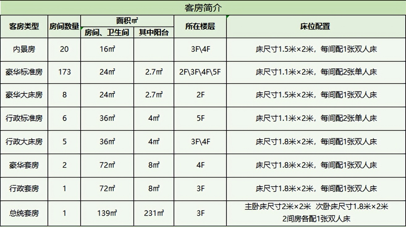 - 基础房型(豪华标准间)中配备了两张最宽约1.1米的单人床