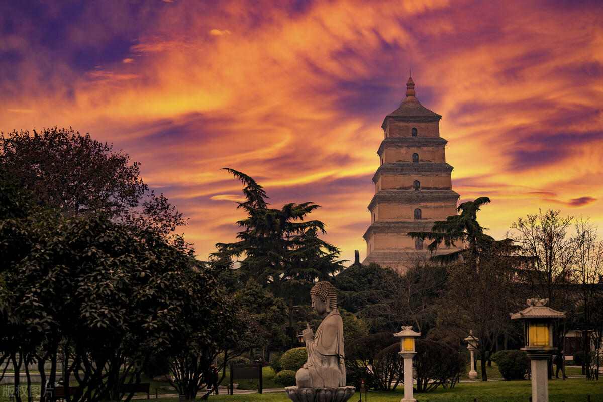 大雁塔位于西安市大雁塔南广场的大雁塔是古代佛教建筑之一,是丝绸之路上的重要旅游景点。