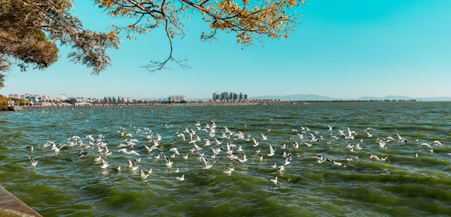 4. 滇池:昆明市区内的知名景点,是中国最大的高山湖泊之一,不仅风景优美,还有丰富的水产资源,可以体验摇橹船或徜徉在湖边走。