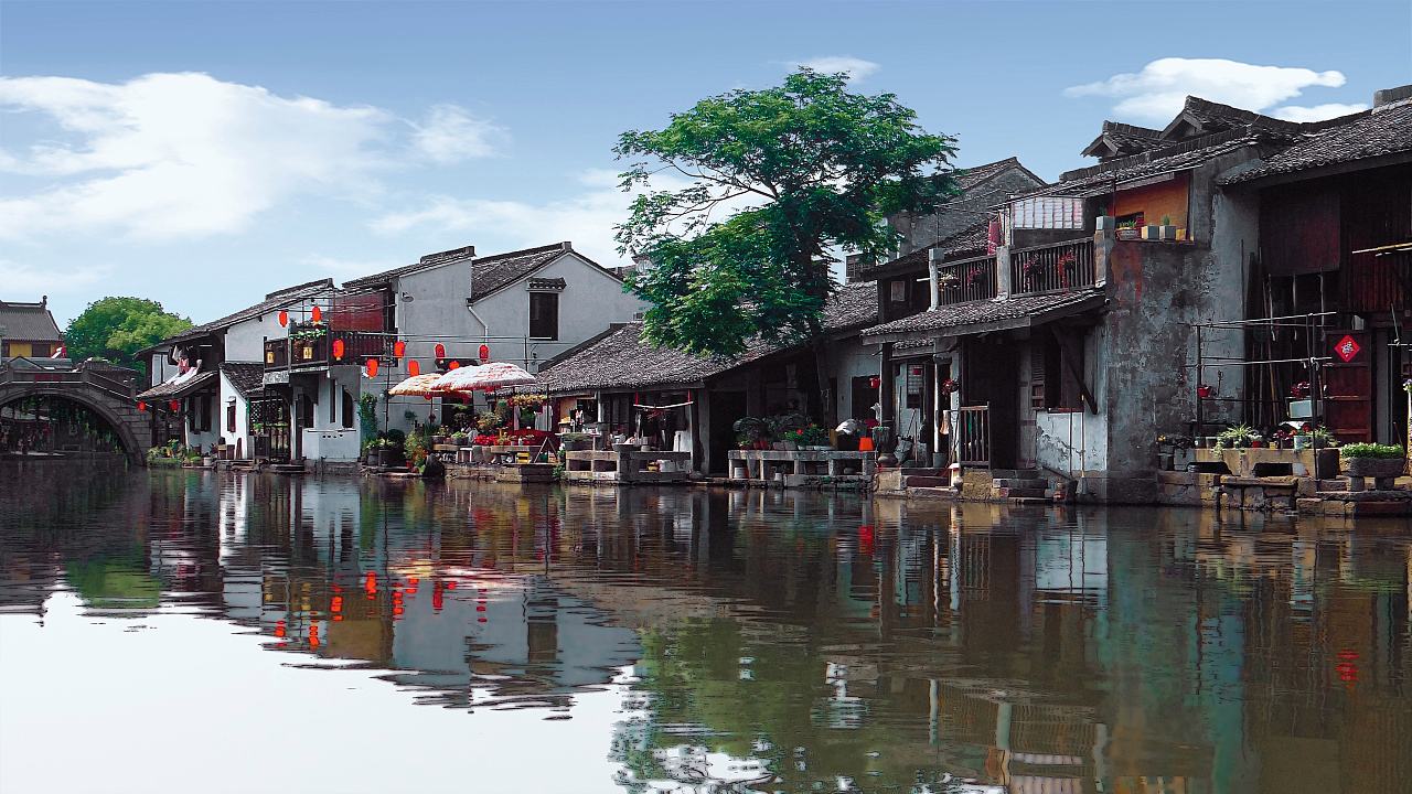 古镇依河而建,北岸为商市,南岸是民居,水上众多石桥连接两岸的往来,建筑风格是典型的江南水乡特色,古朴且典雅~