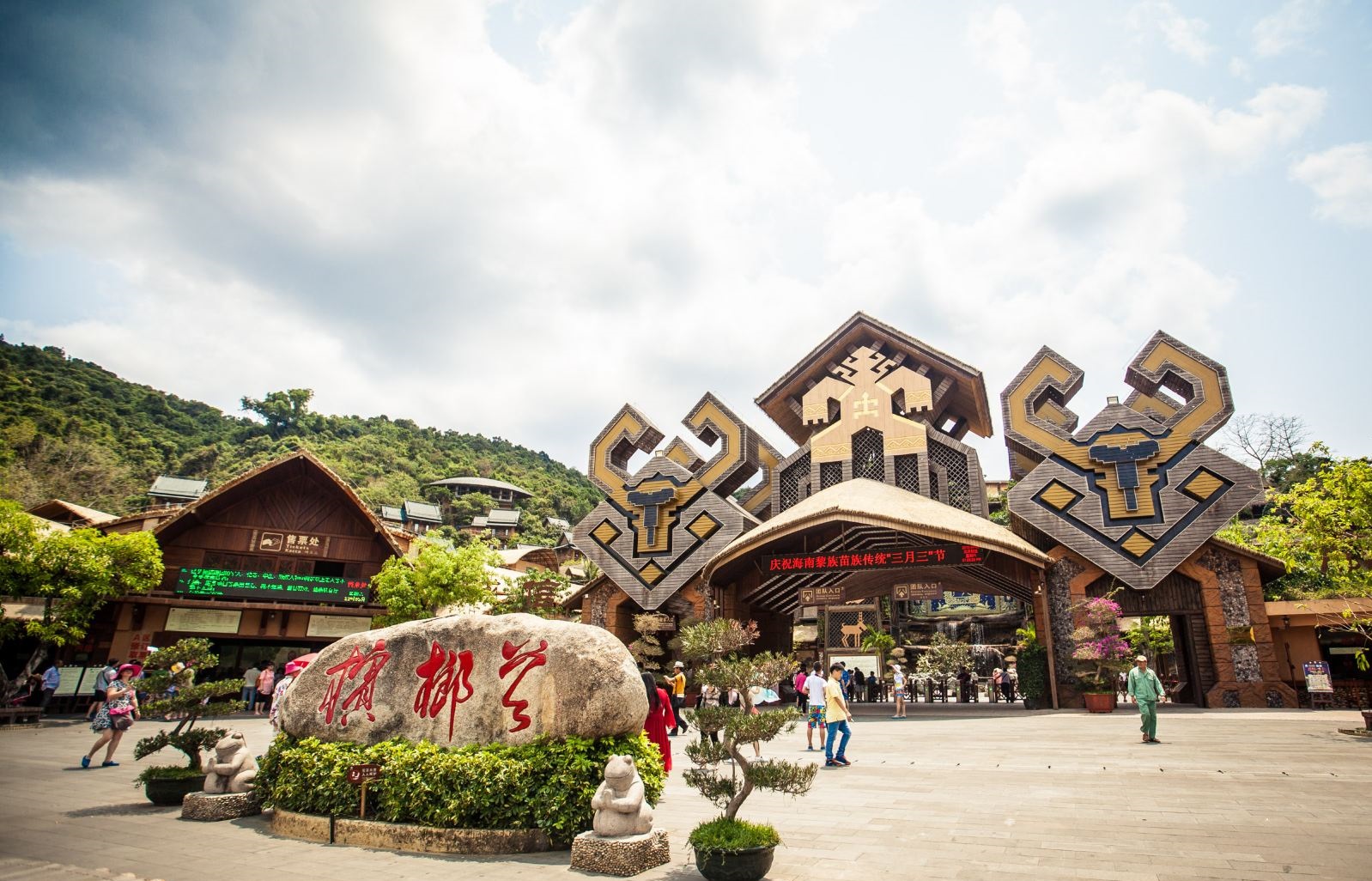 景区以南国古老的文明为史脉,黎苗风情为中心,热带生态园林为纽带,