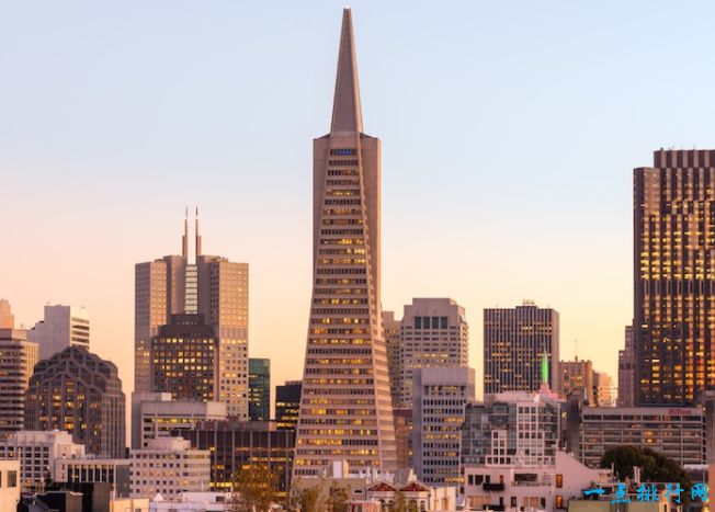 位于金融区的心脏地带,“跨美洲金字塔”是旧金山除了金门大桥之外著名的标志,据其建筑师威廉·佩雷拉说,金字塔是摩天大楼的理想形状,它可以让更多的空气和光线在下面的街道上,在1972年完工,金字塔的高度为260米(853英尺),仍然是旧金山最高的建筑。