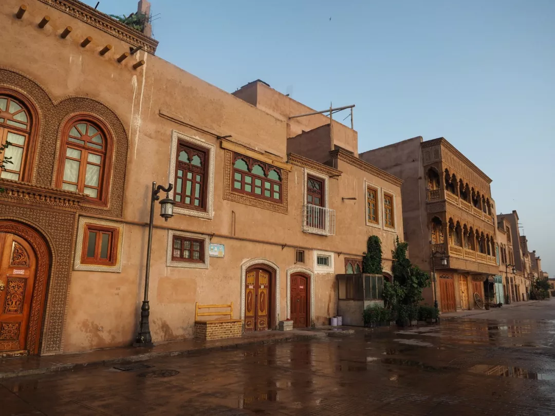 街道两旁充满伊斯兰与维族风情的建筑,漫步其间,仿佛进入中亚的异域。