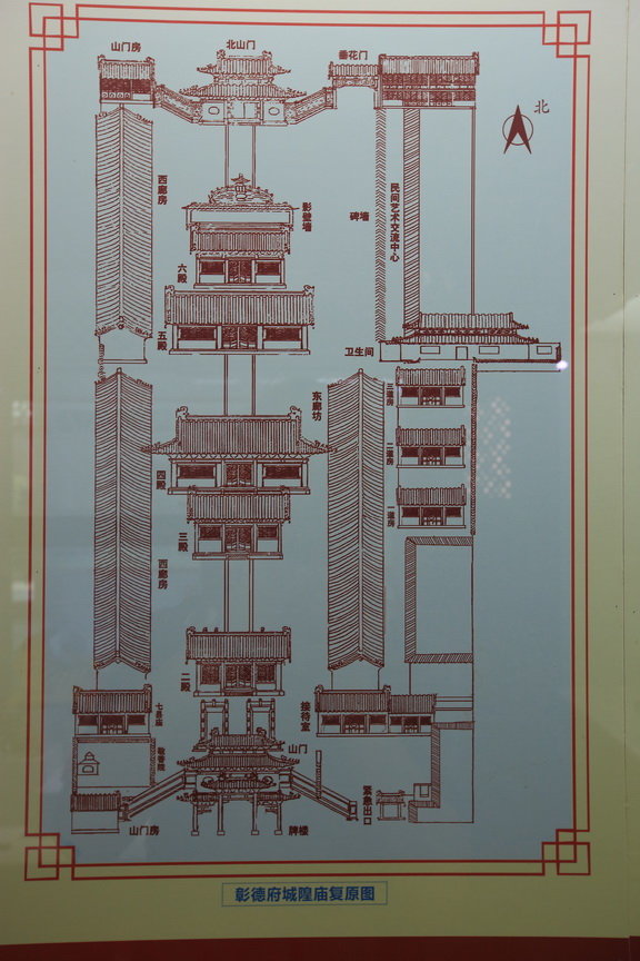 文王庙建在羑里城遗址之上,座北朝南,现存建筑系明嘉靖二十一年(1542年)重建。