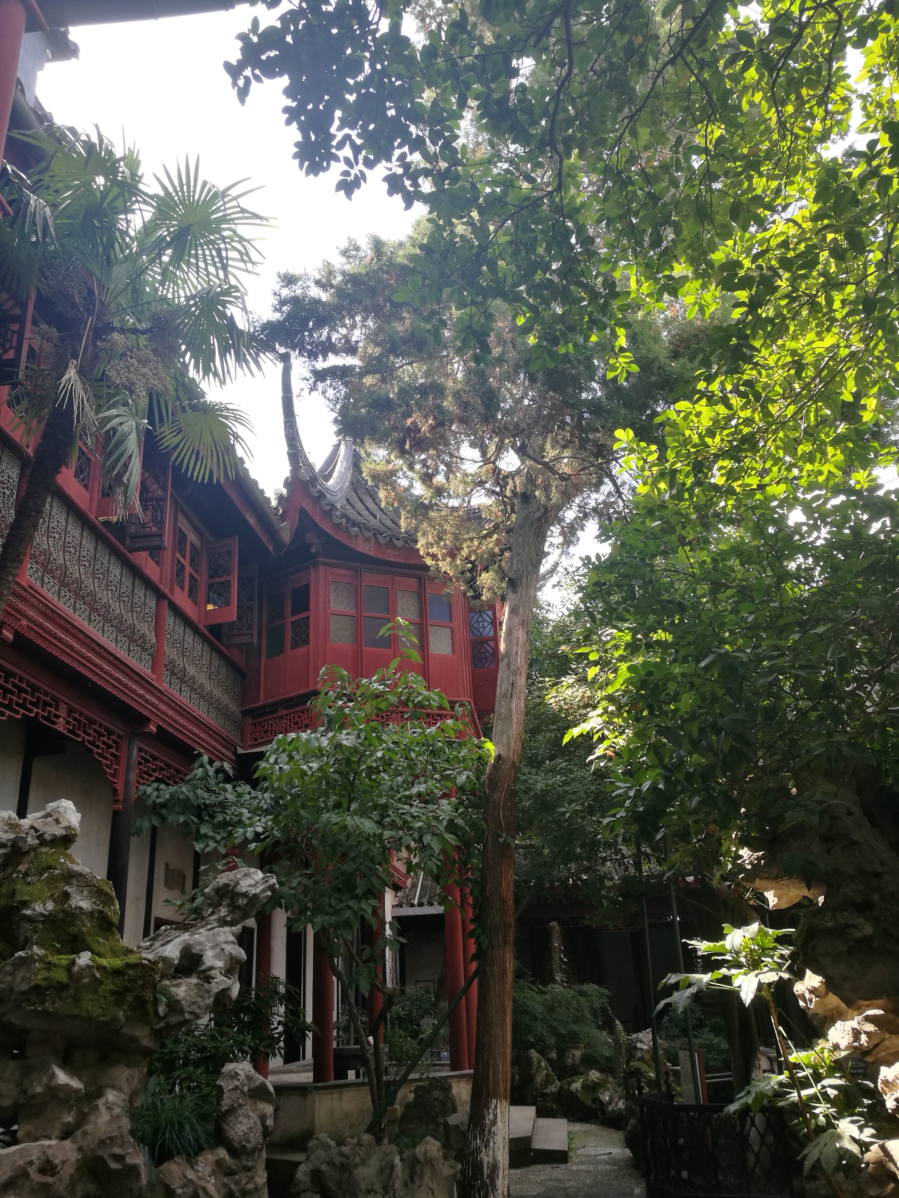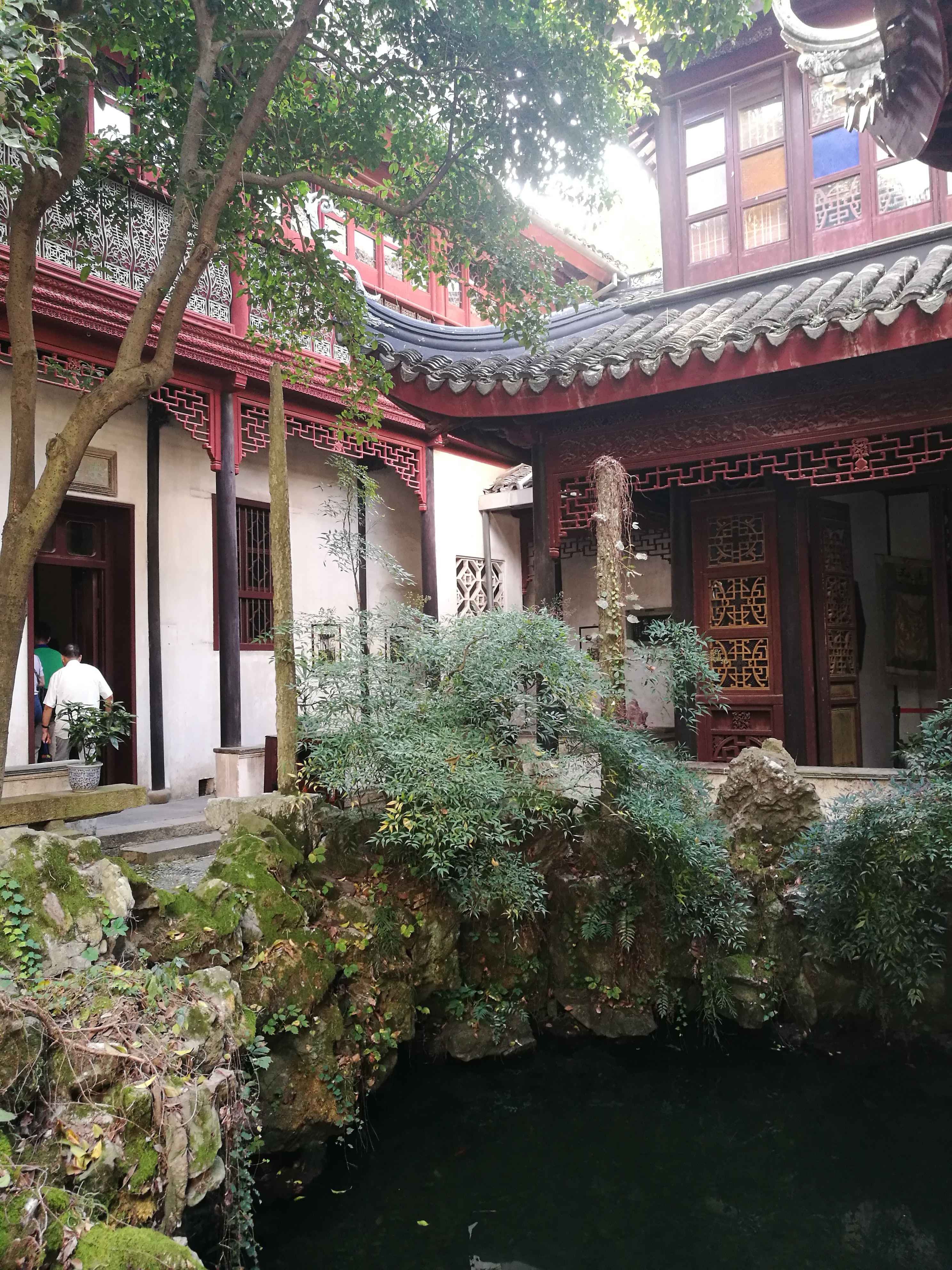 进景区大门,先有池塘前缀,旁有水榭长廊相伴。