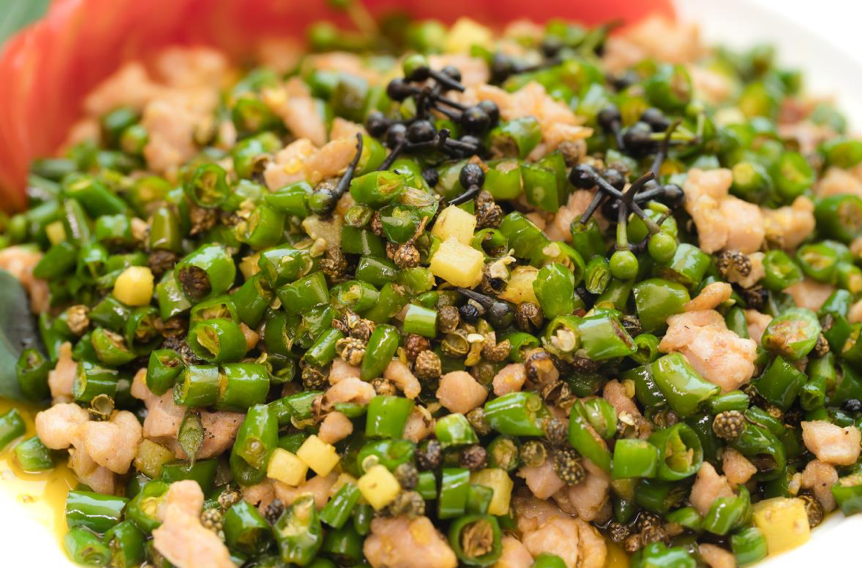 接下来这道菜叫“木姜渣渣兔”,这个渣渣让我突然想起了“渣渣辉”。看着色香味俱全啊,我已经问到了花椒的香味了,你呢?