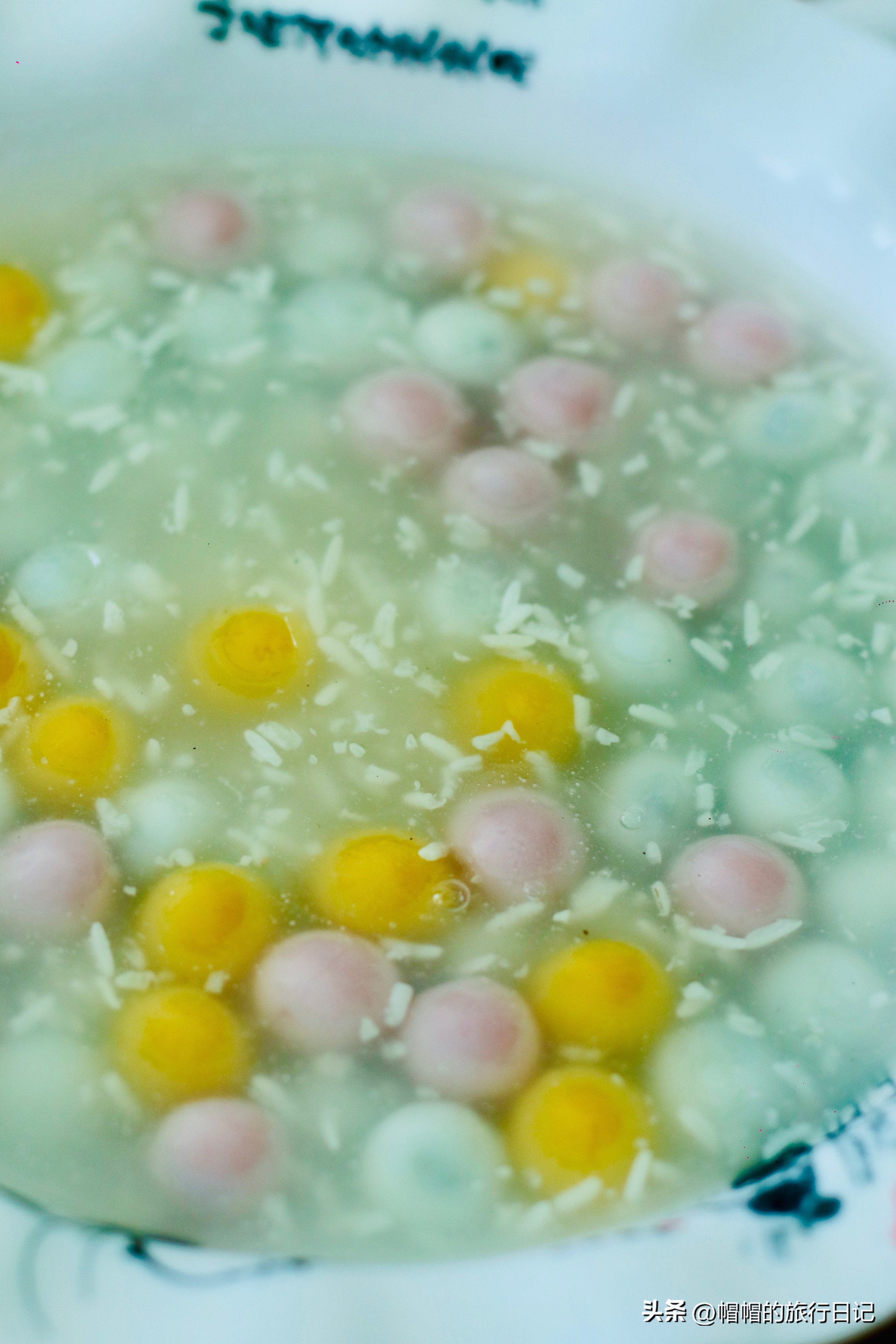 猫耳朵:猫耳朵是洞头特色小吃,晶莹透亮的它,是以番薯淀粉包裹花生、芝麻、糖,添加了姜丝与红糖等进行了调和,甜点。为洞头限定甜品,甜而不腻,丝滑而有嚼劲。