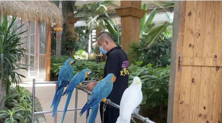 【鹦鹉园】鹦鹉园里有上千只鹦鹉,品种繁多而且完全不怕人,可以近距离观赏,亲密接触,在周末及节假日每天有3场鹦鹉表演。